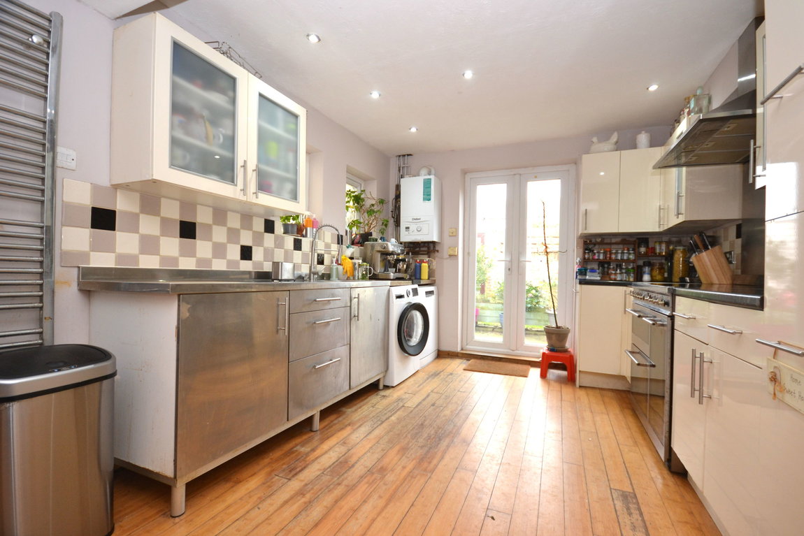 Constructed in 1896 and benefiting from high ceilings and bay windows as befits the era the accomodation comprises spacious lounge, separate diner, downstairs WC, large open plan kitchen with additional area created by a conservatory type enclosure, and upstairs are 3 double bedrooms (the main bedroom is a massive 5 x 4 metres) and a separate WC and bathroom.