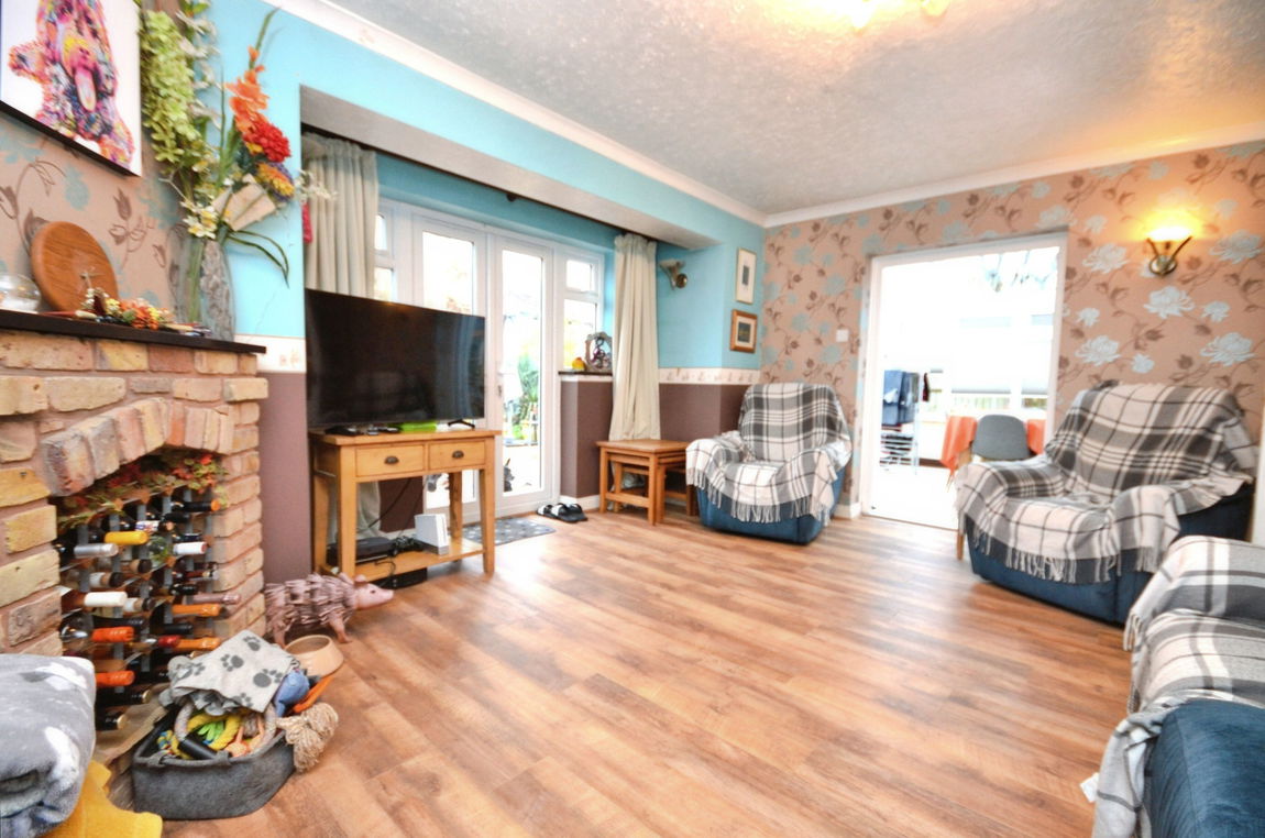 A spacious living room flows seamlessly to the garden via double doors and opens into a large, bright conservatory, ideal as a dining space or relaxing sunroom.