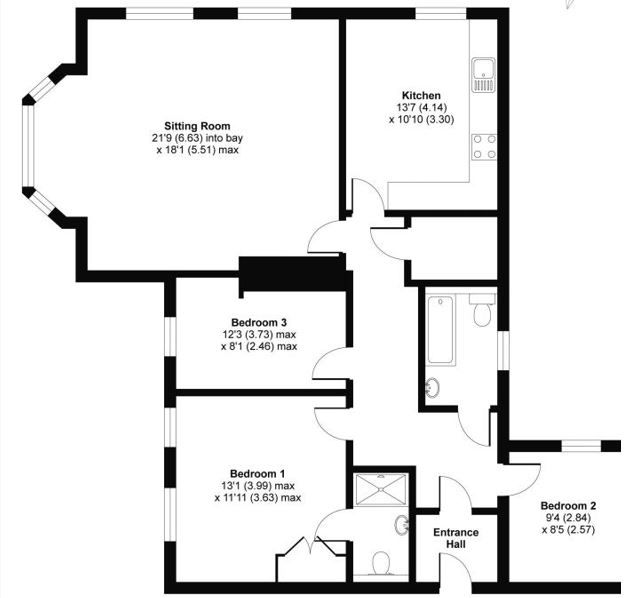 The apartment offers a massive 1162 sq ft of floor space and comprises a huge sitting room which benefits from dual aspect sash windows, large kitchen/breakfast room with space for a dining table, three double bedrooms, en-suite bathroom and family bathroom. All rooms feature high ceilings and the property is offered with two allocated parking spaces.