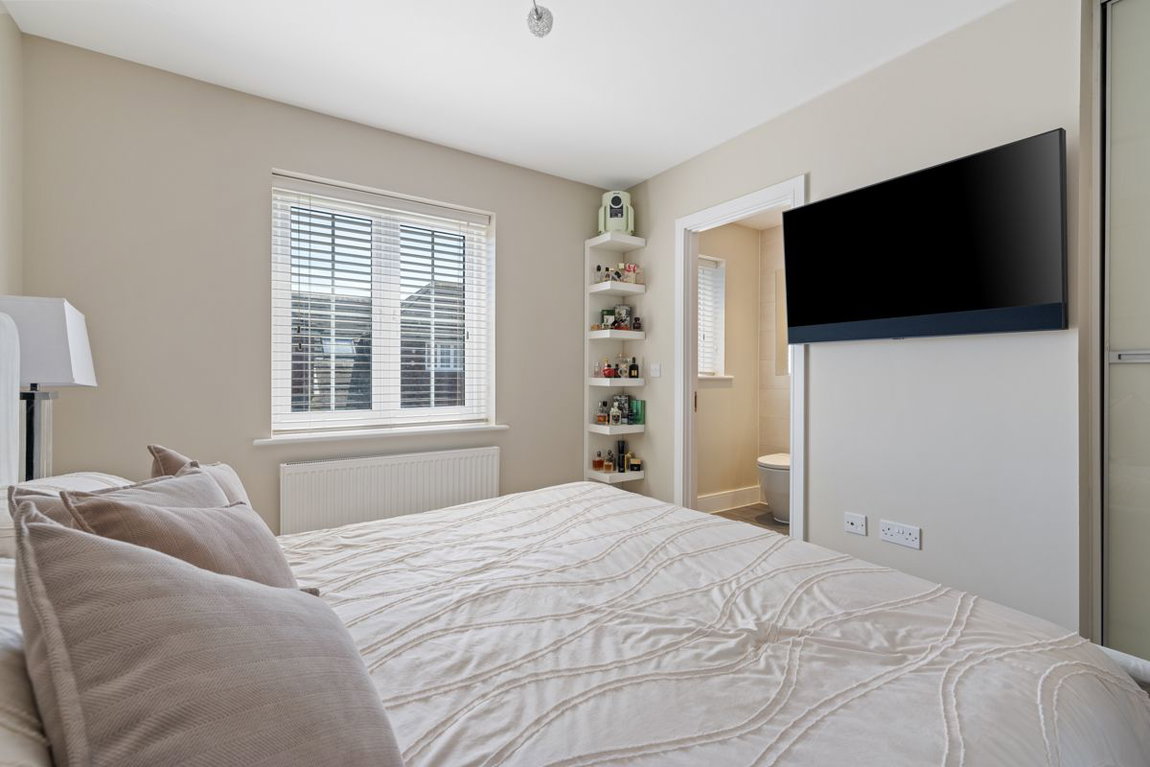 Upstairs, the property continues to impress with two well-proportioned double bedrooms, including a generous primary bedroom featuring its own en-suite shower room. A third bedroom offers excellent versatility, ideal as a guest room, dressing room, or nursery, alongside a modern family bathroom.