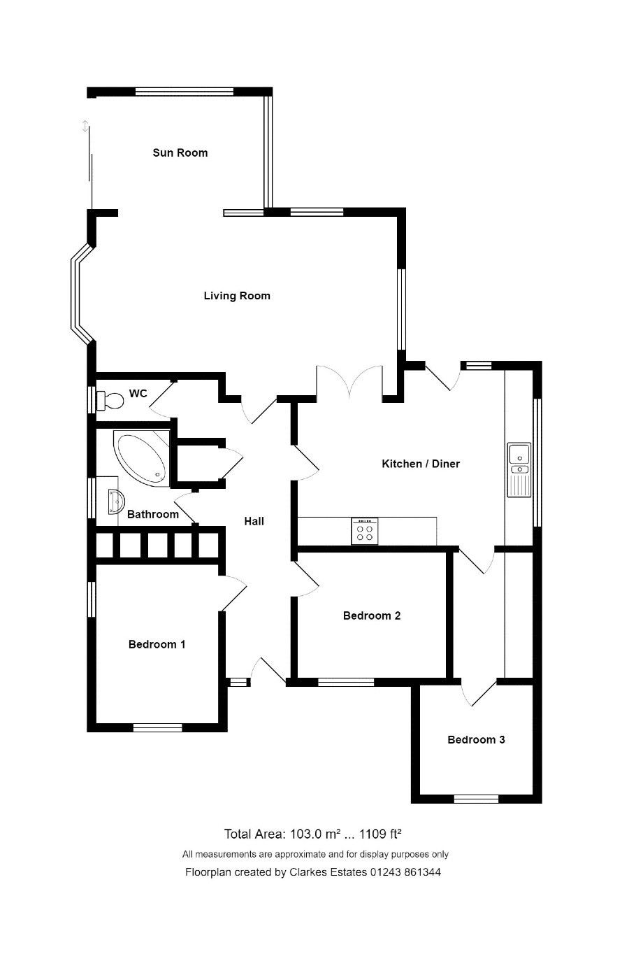 A delightful DETACHED BUNGALOW with versatile accommodation situated in a quiet cul-de-sac in Felpham.  Comprising entrance hall, living room, SUN ROOM, kitchen/diner, utility room, 3 bedrooms, bathroom, separate WC and OFF ROAD PARKING.