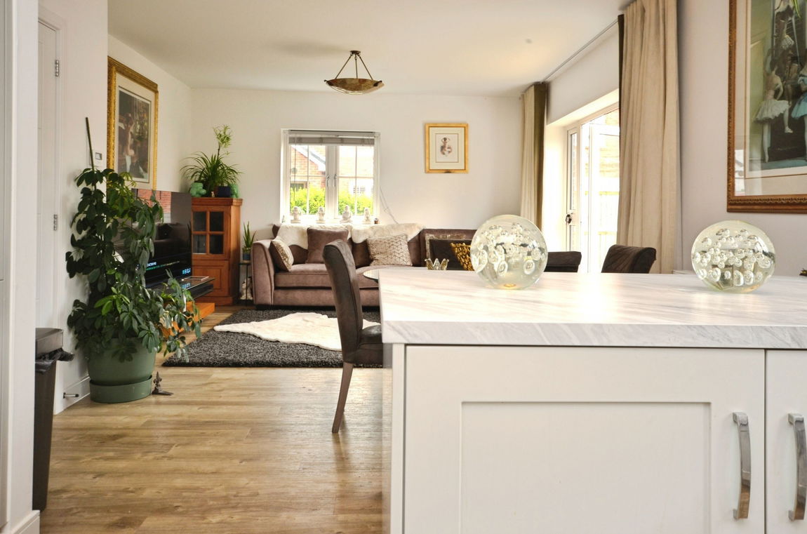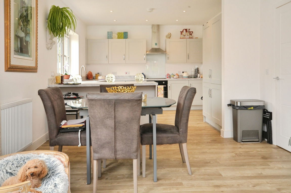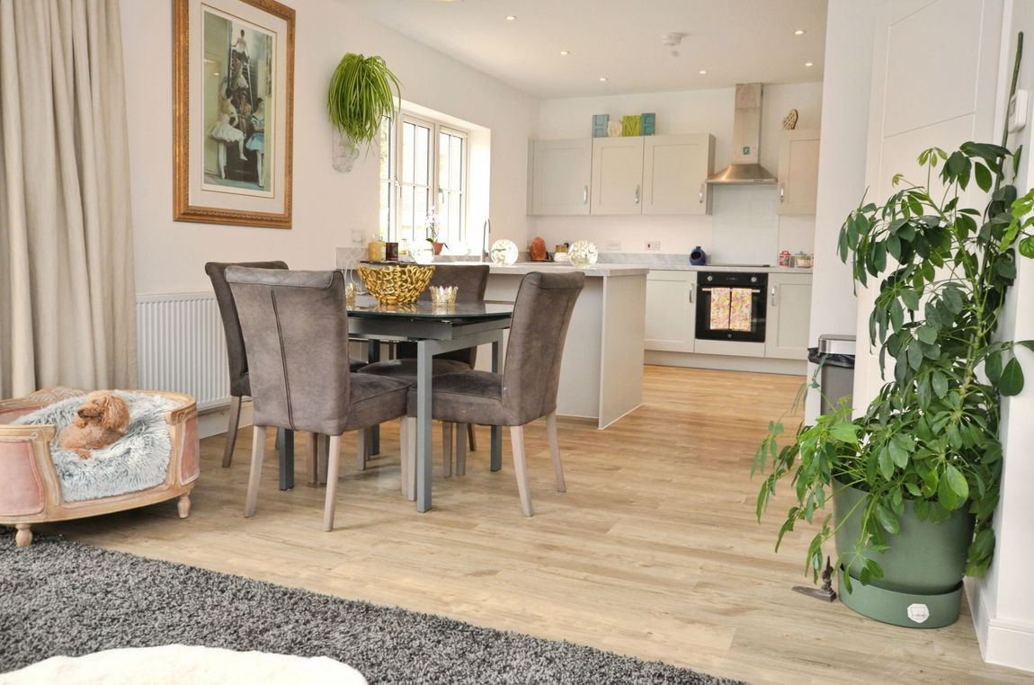 Overlooking acres of Farmland, the property boasts a spacious open-plan kitchen, living and dining area - perfect for both relaxed everyday living and entertaining. The contemporary kitchen is fully fitted with integrated appliances, offering both style and functionality.