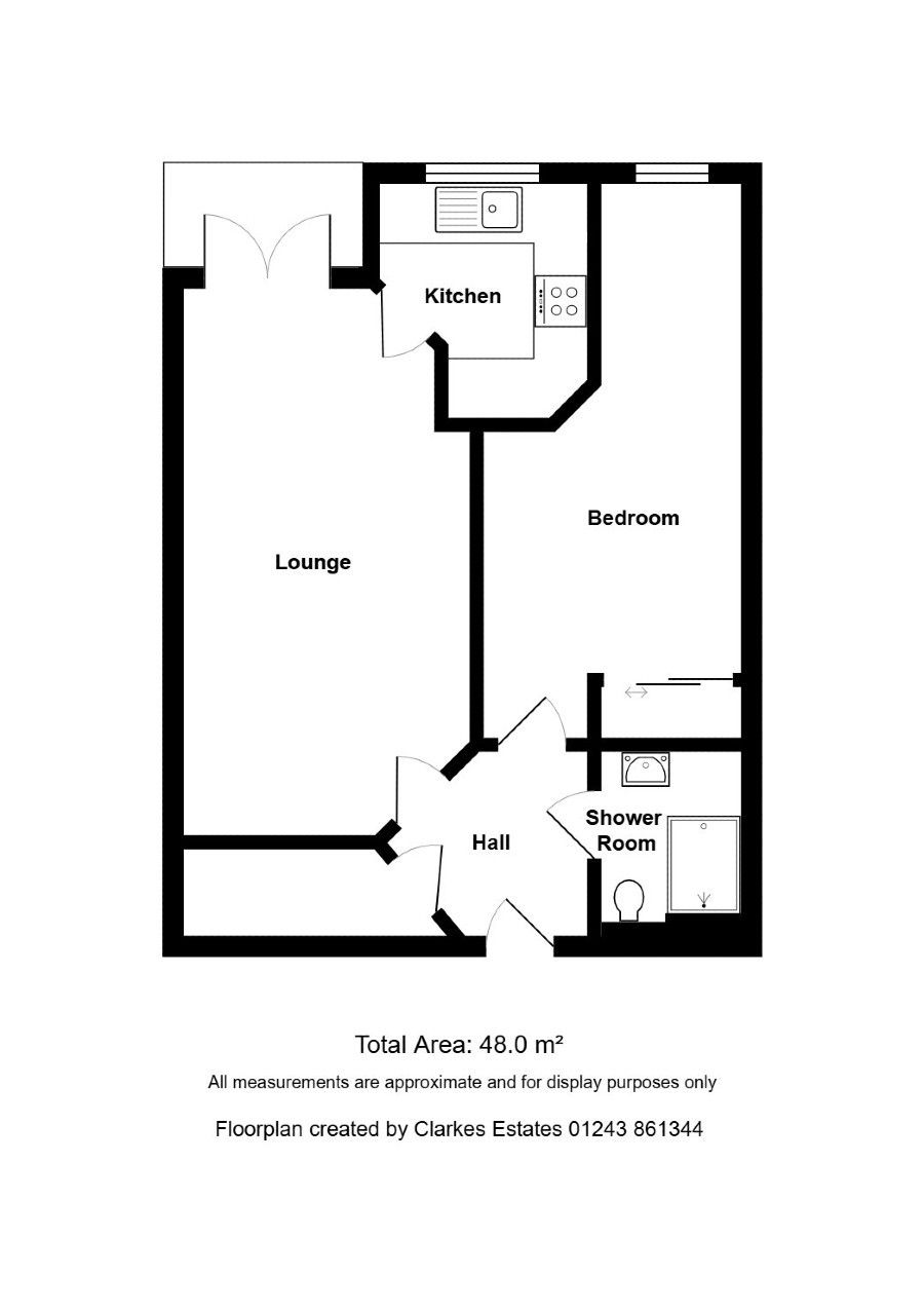 The accommodation comprises entrance hall, large lounge leading to the kitchen, one double bedroom and a shower room. Internally the property is clean and tidy and in an excellent state of decor with modern kitchen units and walk-in shower. There is a built-in wardrobe in the bedroom.