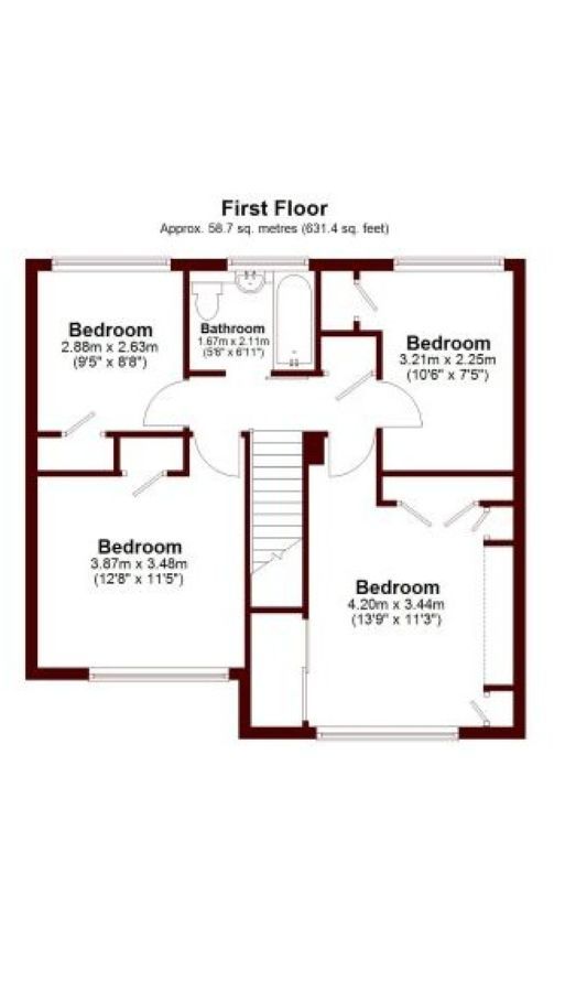 Bedroom: - 4.2m x 3.44m (13'9" x 11'3")