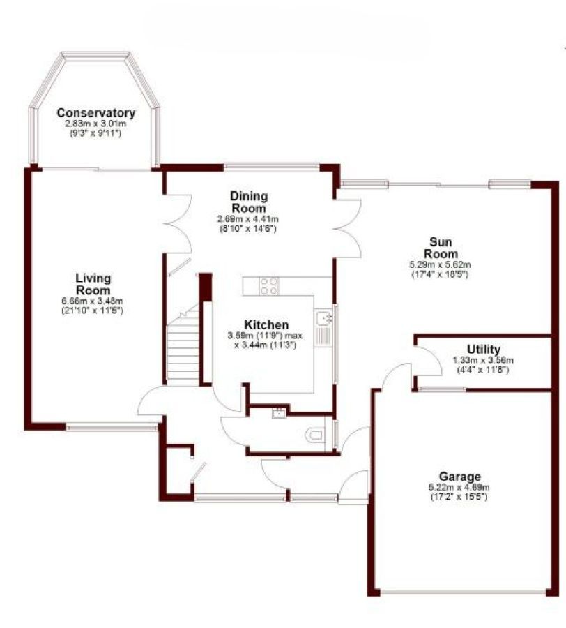 Sun Room: - 5.29m x 5.62m (17'4" x 18'5")