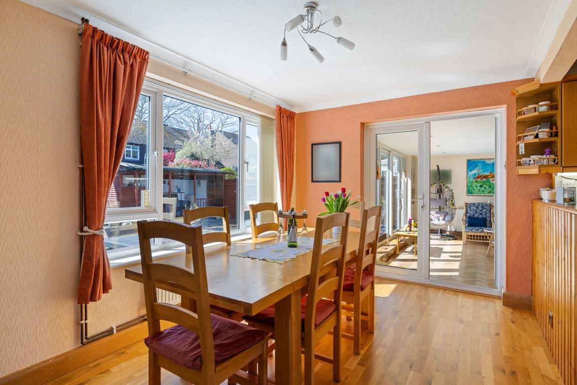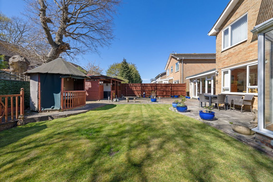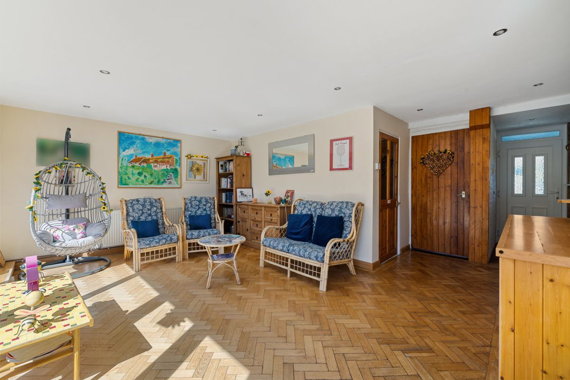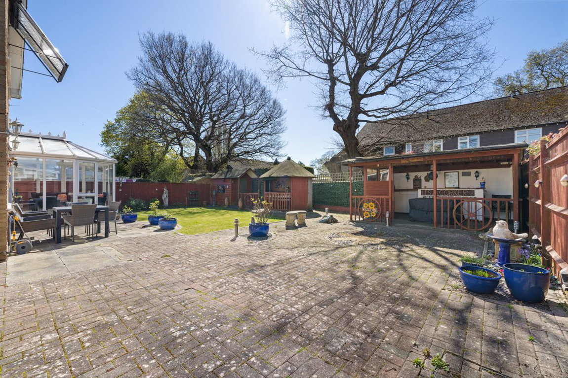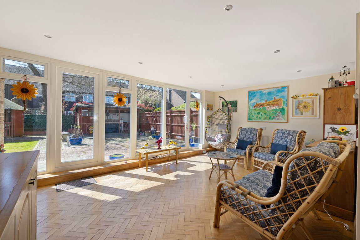 A particular feature of the home is the additional sun room room, overlooking the attractive south-facing rear garden. The outside space includes a bar and a charming turret seating area, making it ideal for relaxing or hosting guests. A useful utility area and side access to the front of the property further enhance the practicality of the layout.